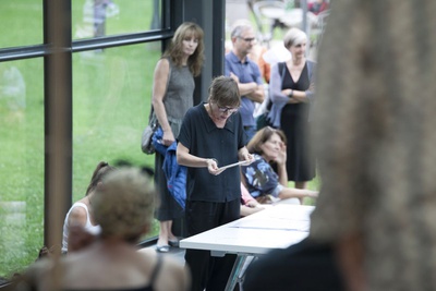 Ausgehend von der Erörterung der akustischen Begebenheiten und Besonderheiten im und um das Steinhaus und von der Befassung mit der Person Günther Domenig und seinem Werk erarbeitete Barbara Kaiser eine ortsbezogene Inszenierung mit einem Stimmensemble. Startpunkte für die Annäherung an diesen Ort bildeten für sie folgende Fragen: Welche Grundtöne lassen sich im und um das Gebäude finden? Wie lassen sich die vorgefundenen architektonischen Begebenheiten in Körperlichkeit und Klang übersetzen? Was wurde hier von Günther Domenig abgearbeitet und hat sich in diese Architekturskulptur eingeschrieben?