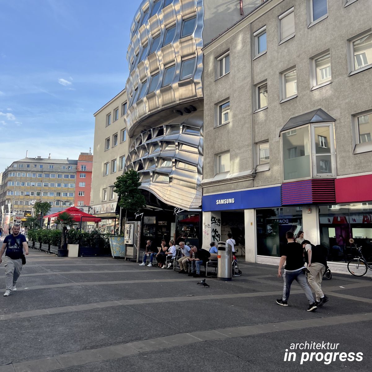 Der Vortrag wurde in Kooperation mit architektur in progress organisiert. Im ehemaligen Gebäude der Z-Sparkasse mit der markanten, biomorphen Metallfassade, welche von Günther Domenig 1975-1979 in der Favoritenstraße 118 realisiert wurde und als wichtigster Bau der frühen Phase der „Grazer Schule“ 2005 unter Denkmalschutz gestellt wurde.