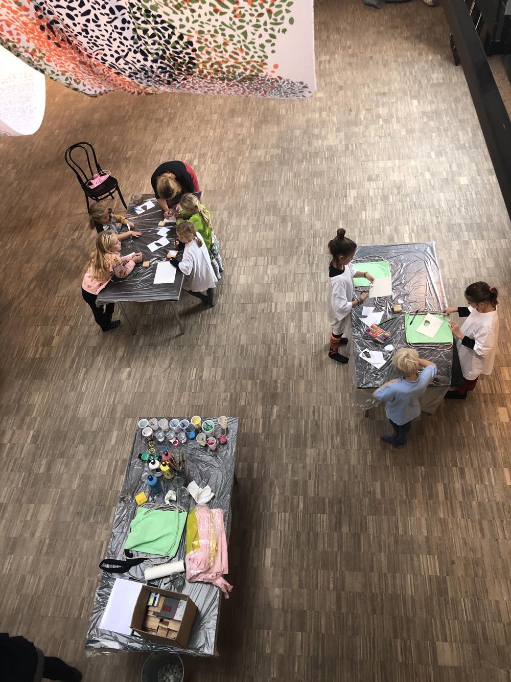 Mit dem Architektur-Spiel-Raum-Kärnten wurde die Installation FFERRAZZO von Stephanie Klaura entdeckt und erkundet. In der Textilwerkstatt wurde eingeladen selbst kreativ zu sein und zu werkeln. Mittels Steindruck wurden eigene Terrazzo-Muster auf Stofftaschen aufgebracht.