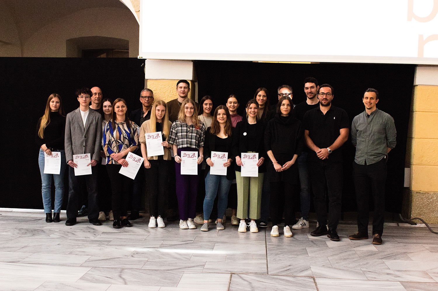Die 15 besten, durch die Jury vorausgewählten, präsentierten dann am 04.04. ihre Arbeiten vor der hochkarätigen Fachjury und den anderen TeilnehmerInnen ihre Beiträge in der Aula des Spittls. Bei einem gemeinsames Abendessen und einer Party im Spittlkeller, von den Studierenden für die SchülerInnen veranstaltet, wurde der Abend gebührend gefeiert. Am folgenden Tag wurden die PreisträgerInnen vor allen TeilnehmerInnen verkündet und die Urkunden feierlich überreicht.