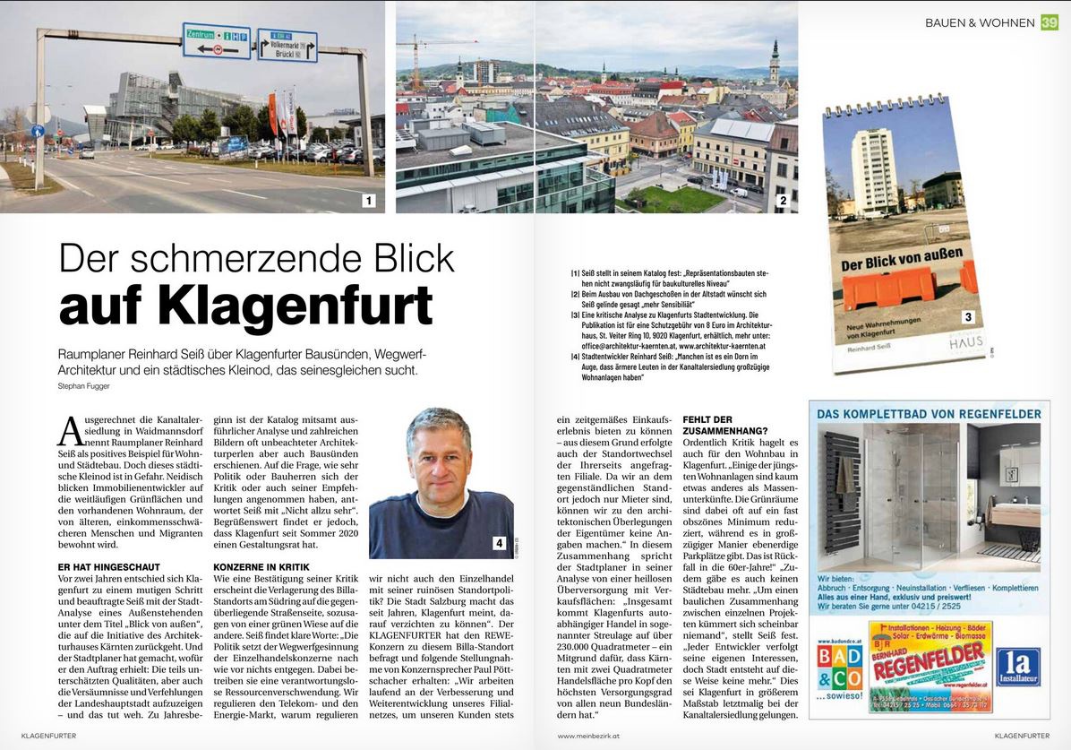 Vor zwei Jahren entschied sich Klagenfurt zu einem mutigen Schritt und beauftragte Seiß mit der Stadt-Analyse eines Außenstehenden unter dem Titel "Blick von außen", die auf die Initiative des Architekturhauses Kärntens zurückgeht.