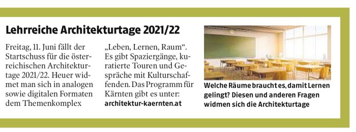 Kleine Zeitung: "Lehrreiche Architekturtage 2021/22 "