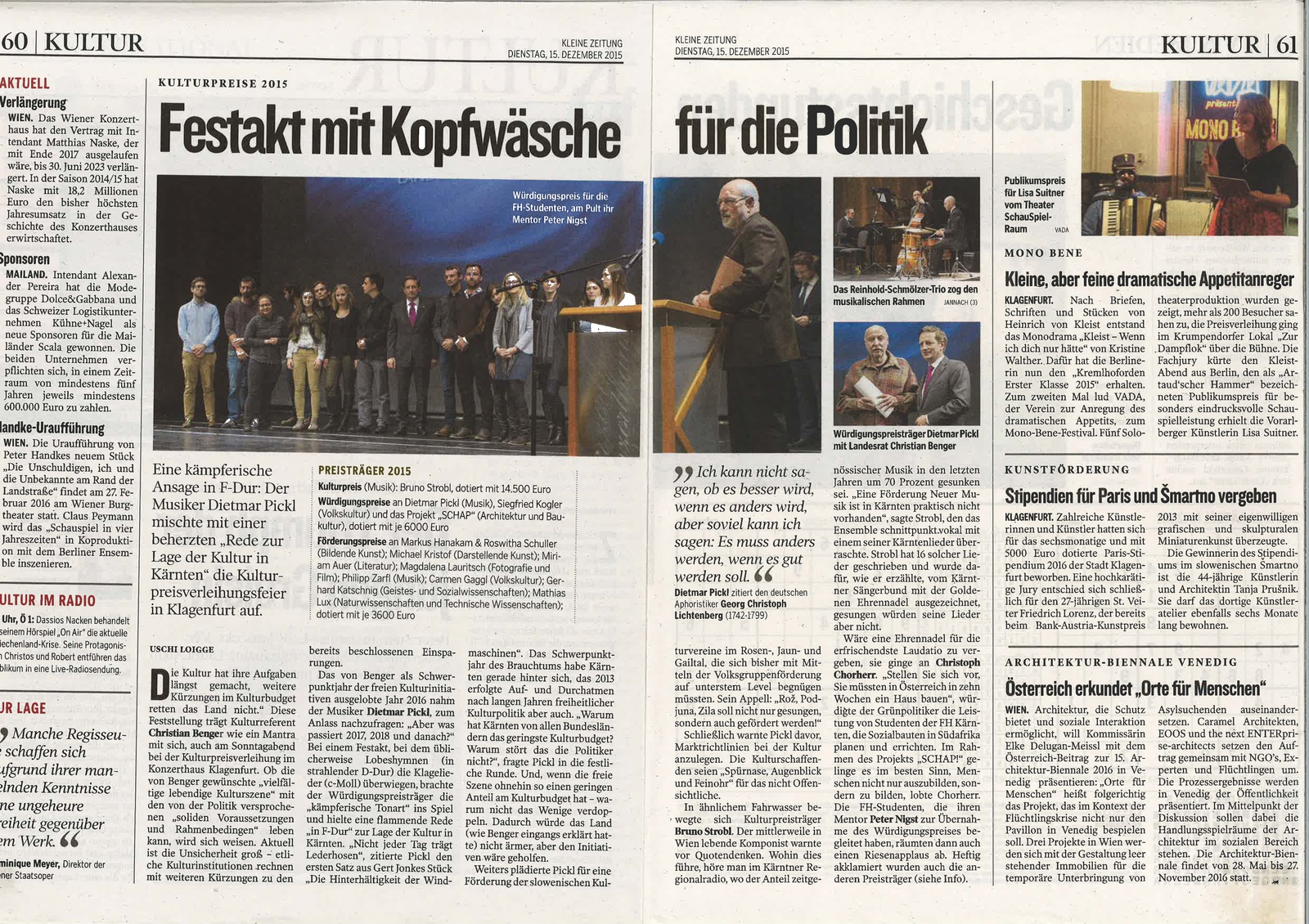 Kleine Zeitung_2015.12.15_ Festakt mit Kopfwäsche für die Politik