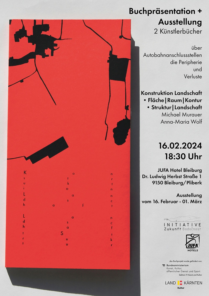 Das Projekt „Konstruktion Landschaft“ ist im Rahmen des Architekturstipendium Kärnten 2021 entstanden und wurde 2022/23 in einer Ausstellung im Architekturhaus Kärnten präsentiert. Es ist eine visuelle Analyse über landschaftliche Veränderungsprozesse und den ästhetischen Inhalt peripherer Gebiete. Die Künstlerbücher erscheinen in einer Auflage von 300 Exemplaren. Jedes Exemplar von Teil 1 hat einen individuellen Siebdruck am Cover (300 Unikate), der Teil 2 ist von Hand gebunden, der Umschlag wurde im Siebdruckverfahren bedruckt.