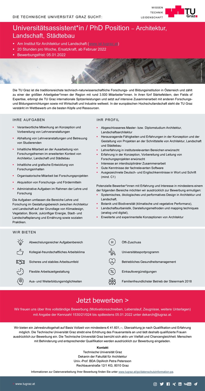 StellenausschreibungAm Institut für Architektur und Landschaft (www.ial.tugraz.at)