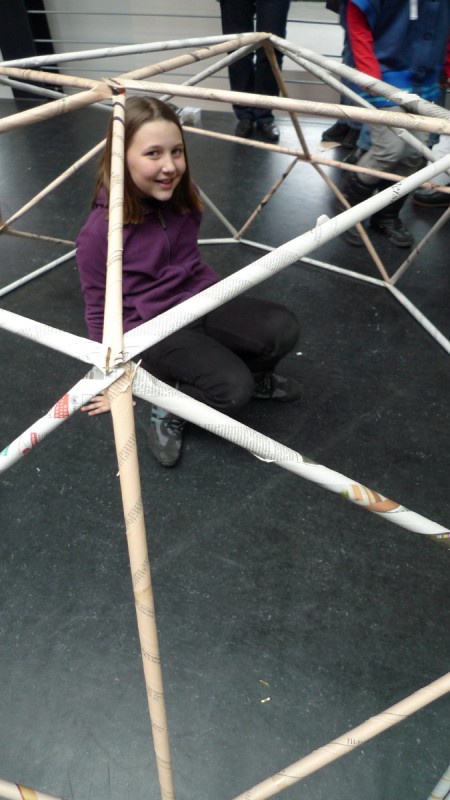Aus gewöhnlichem Zeitungspapier können mit Hilfe statisch-konstruktiver Grundkenntnisse tragfähige, stabile Stabtragwerke hergestellt werden - was so trocken klingt, kann dennoch viel Spaß machen: Die Kinder experimentieren nach einer kurzen Einführung selbst und finden auch meist selbst die idealen Grundformen heraus, mit denen man große räumliche Fachwerke bauen kann.