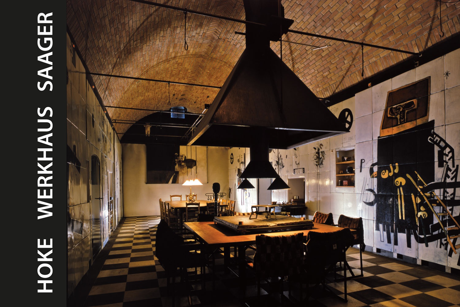 1962 erwarb Giselbert Hoke (1927-2015) Schloss Saager und revitalisierte es in den folgenden Jahren. Mitte der 1970iger Jahre errichtete er das Werkhaus neben dem Schloss mit Ateliers und Werkstätten für die Herstellung von großflächigen Emailwänden, Glasfenstern und grafischen Arbeiten. Von besonderem Interesse für Giselbert Hoke war die Verbindung von Architektur, Raum und künstlerischer Gestaltung. Die von ihm geschaffenen Räume im Werkhaus Saager und die Außenanlagen bilden ein einzigartiges Ensemble.